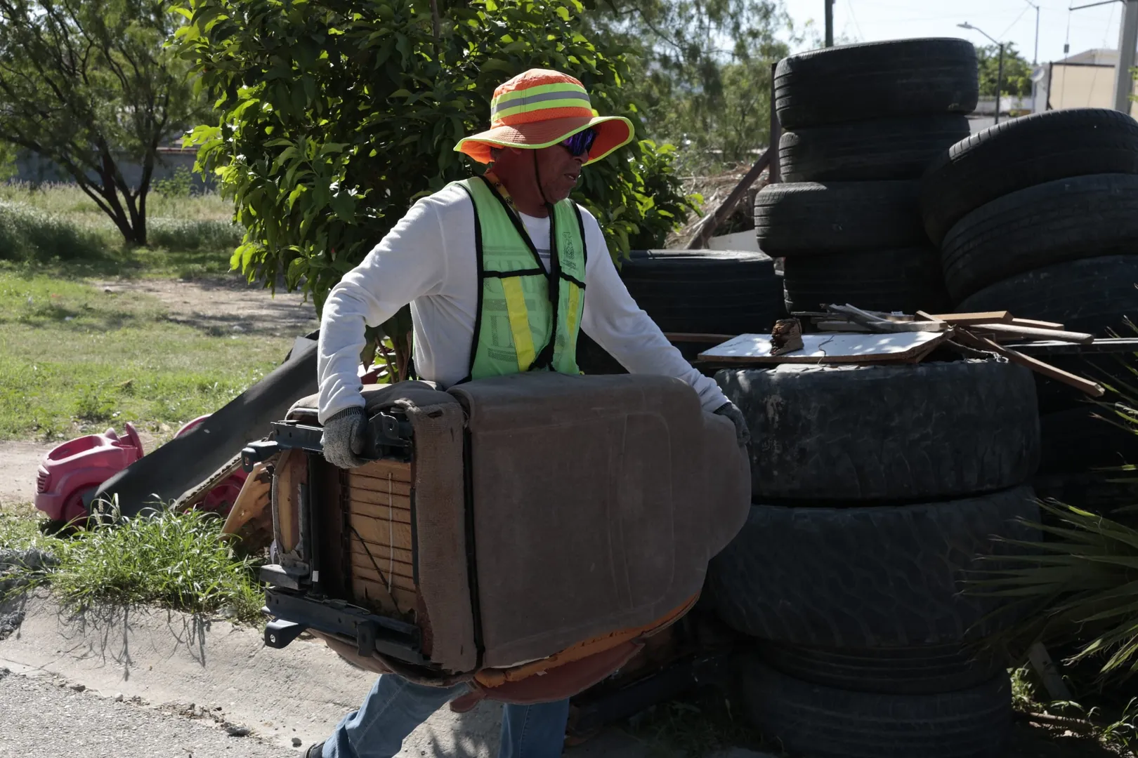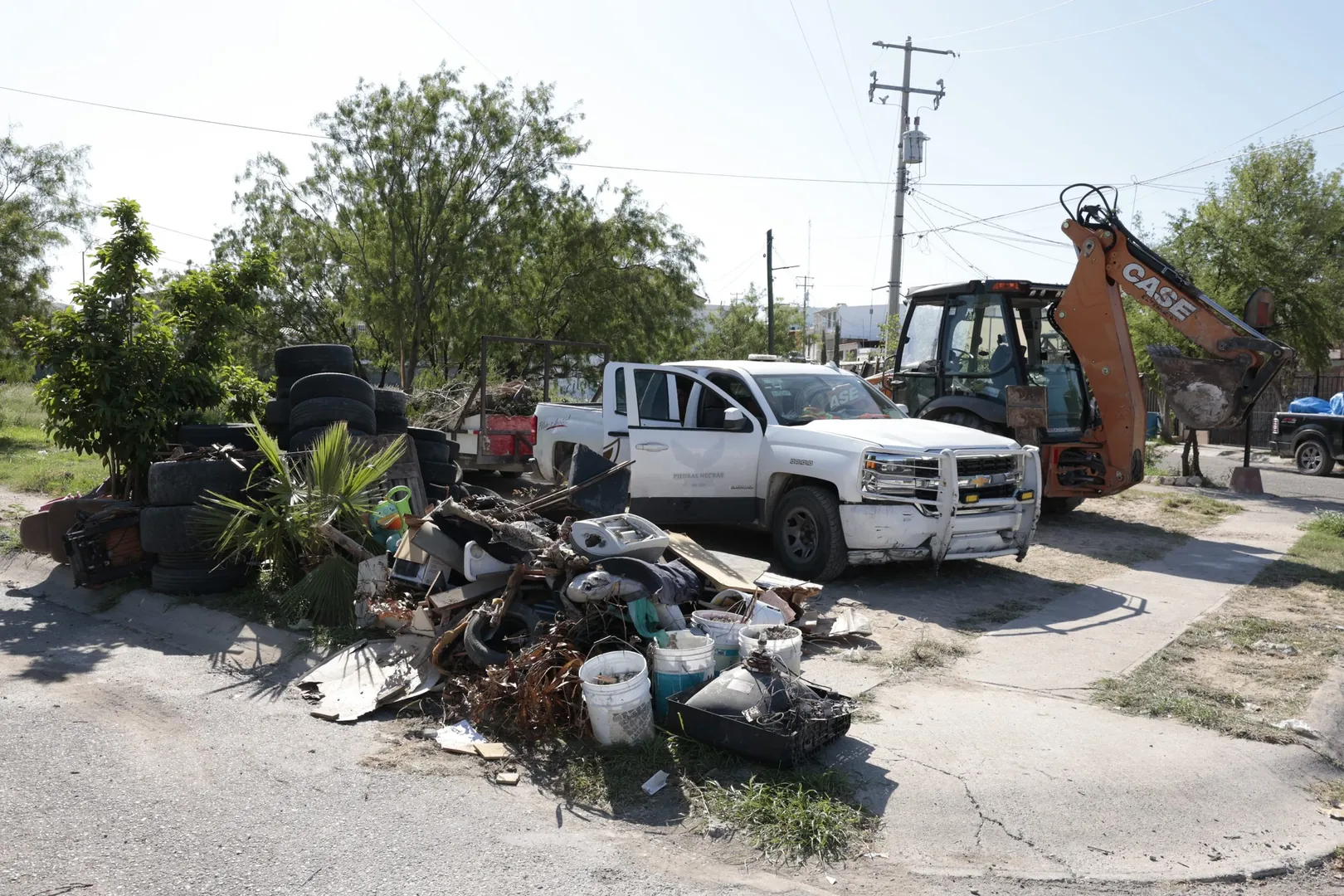 "En esta ocasión, las cuadrillas municipales brindan servicio de limpieza y recolección de cacharros en la tolva instalada en la colonia Real del Norte, atendiendo reportes y necesidades directas de los vecinos."