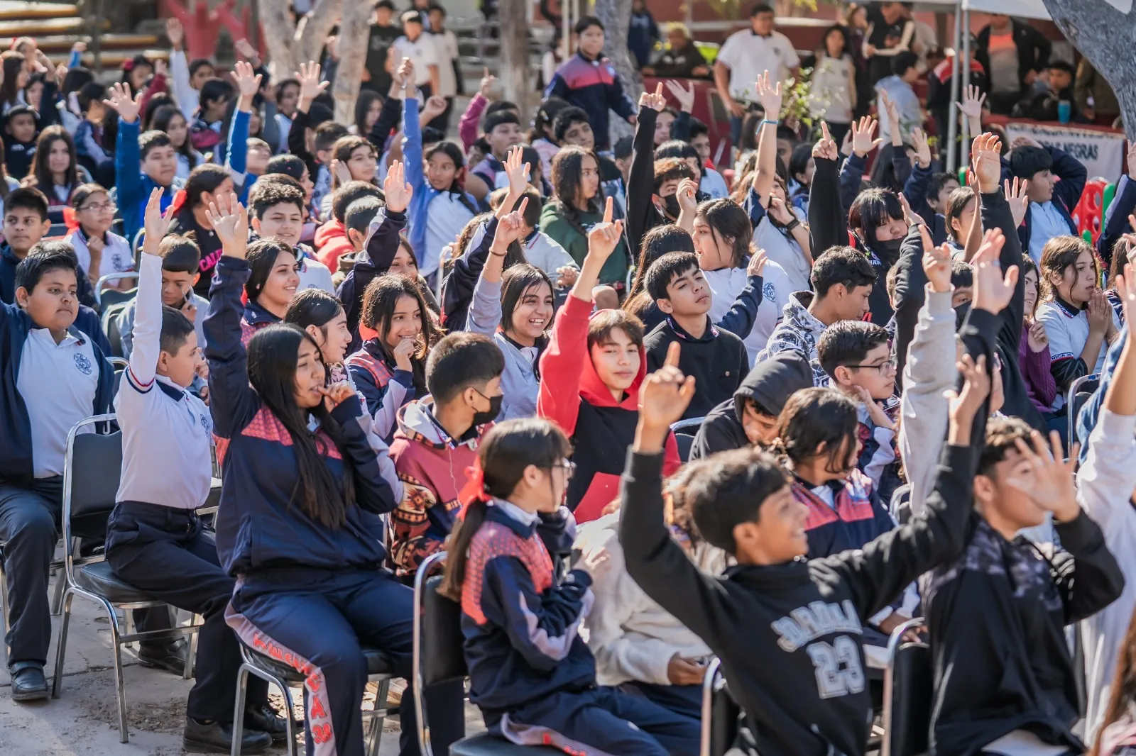 “Al final de este discurso vamos a estar todos los miembros de la Presidencia aquí abajo de estas carpas y, si alguien quiere compartir conmigo algo en especial, los voy a escuchar. Algo que tal vez no quieran decirles a sus maestros, a sus papás o a sus amigos; estoy aquí a sus órdenes para atenderlos de manera personal”.