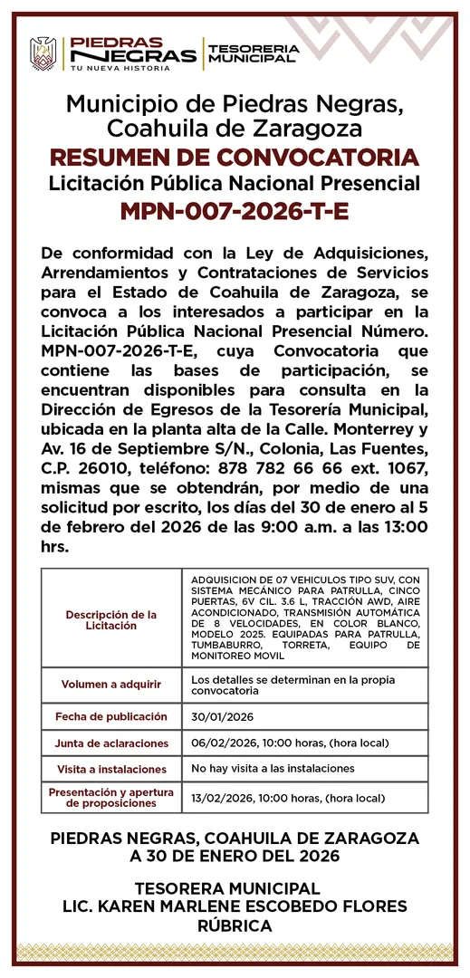LICITACIÓN PÚBLICA NACIONAL PRESENCIAL MPN-007-2026 - T-E