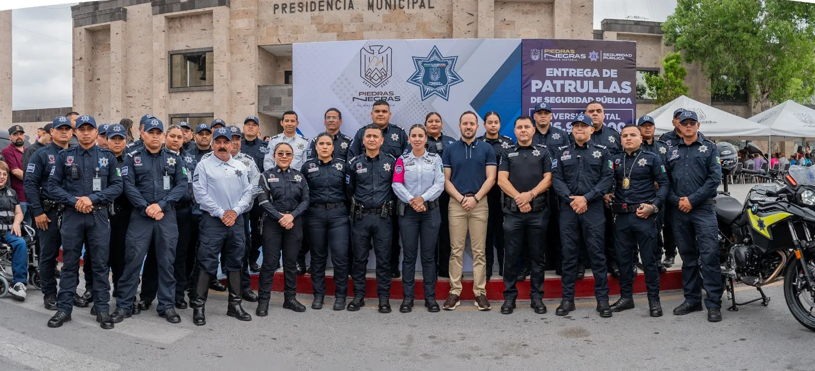 "El equipamiento entregado está compuesto por motocicletas marca BMW y las patrullas corresponden al modelo Durango Police, destacando que actualmente Seguridad Publica cuenta con 51 vehículos y 10 motocicletas".